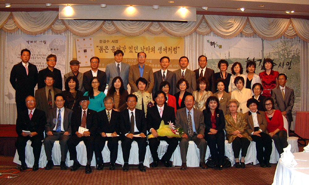 본 협회 이사이자 부회장으로 수고하시는 한길수 시인이 등단 10 여년 만에 첫 시집 '붉은 흉터가 있던 낙타의 생애처럼'(천년의시작 발행)을 출간하고 출판기념회가 10월 15일 LA 옥스포드 호텔 (8가 + 옥스포드)에서 있었다. 한길수 시인은 [2001년 제 3회 재외동포문학상 '낙타가 사는 집']으로 등단했으며, 이번 첫 시집 해설은 "빛나는 눈동자" 의 고독과 열정이란 재목으로 한양대 유성호 교수가 맡았다.