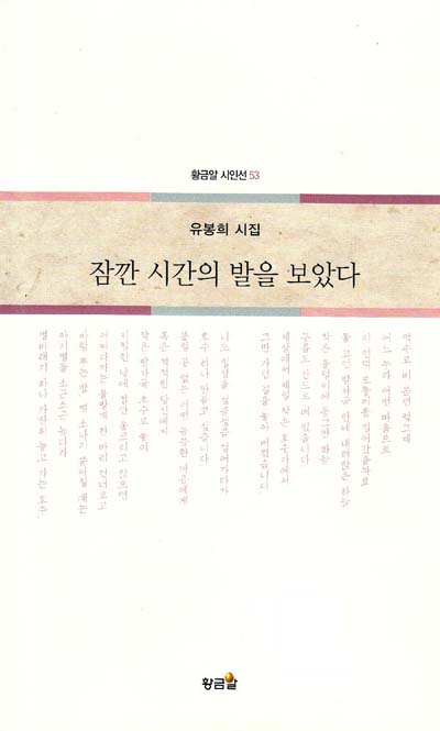 유봉희 시인의 세 번째 시집 잠깐 시간의 발을 보았다는, 다양하고도 아름다운 파문을 그리면서도 하나의 확연한 미학적 구심을 형성하고 있다. 그 다양하고도 아름다운 파문이란 자기 회귀와 은유 원리, 시간에 대한 경험과 해석, 깊은 기억의 인화, 모어 탐색을 통한 언어적 자의식 등으로 나열될 수 있을 것이고, 확연한 미학적 구심이란 기억과 회귀를 통한 근원 탐구의 시학으로 모아질 수 있을 것이다. 이러한 자신만의 세계를 아름답게 완성한 이번 시집을 두고, 우리는 그녀가 앞으로 이루어갈 자기 탐구의 세계를 오래오래 바라볼 수 있었으면 하는 소망을 깊이 가져보게 되는 것이다.